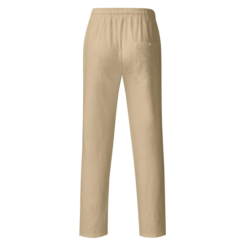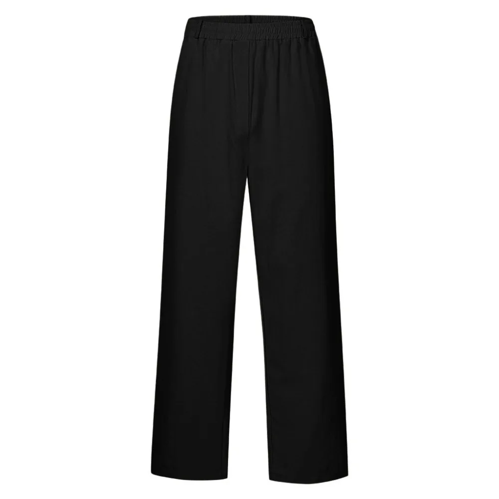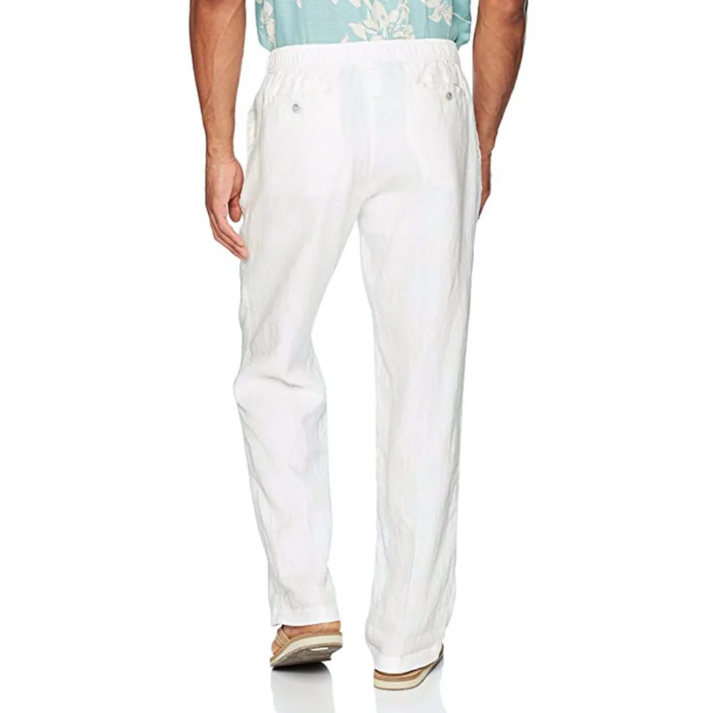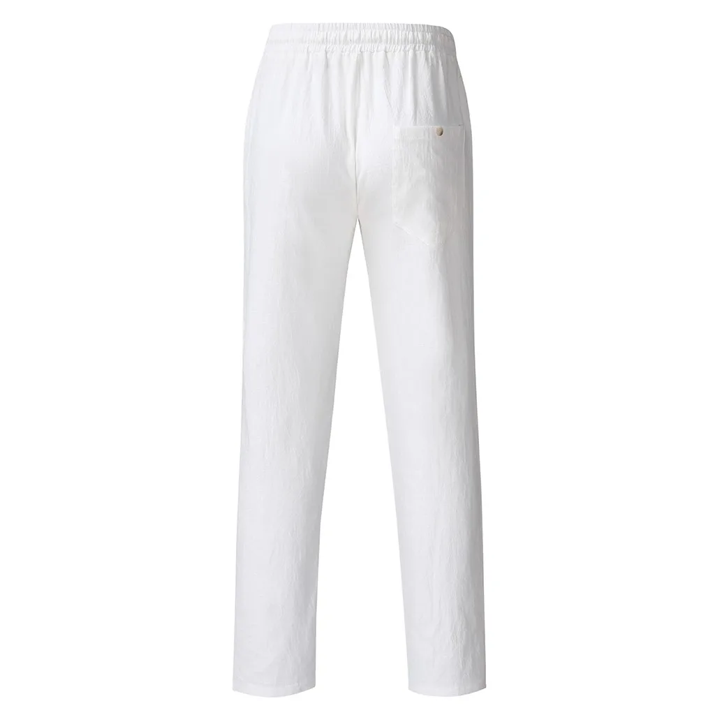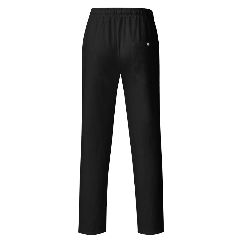 Feitong Fashion Cotton Linen Pants Men Casual Work Solid White Elastic Waist Streetwear Long Pants Trousers