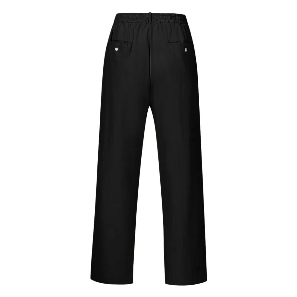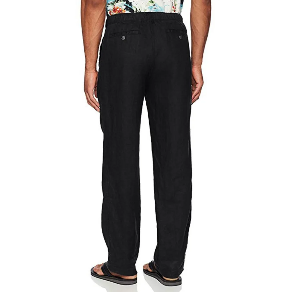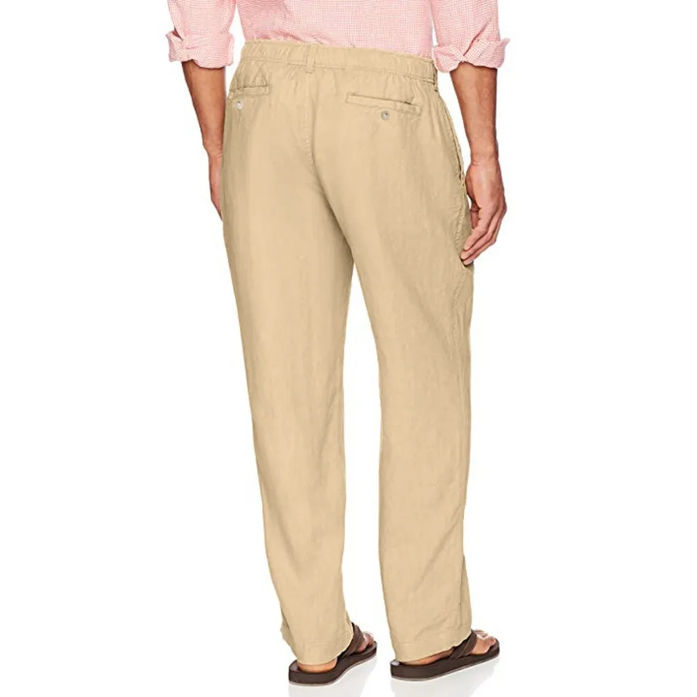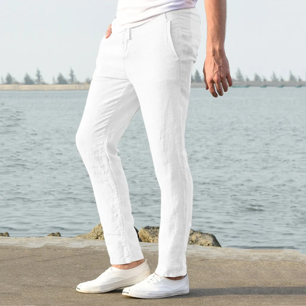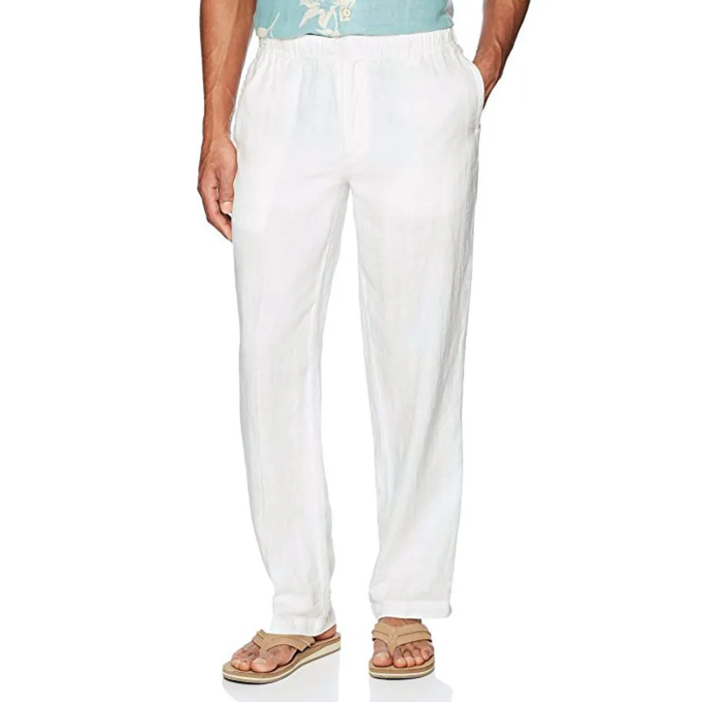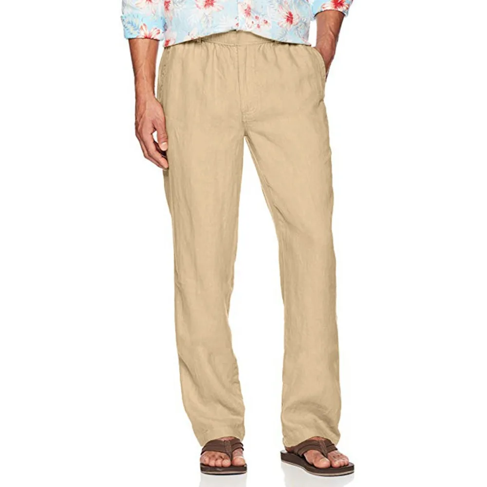 Feitong Fashion Cotton Linen Pants Men Casual Work Solid White Elastic Waist Streetwear Long Pants Trousers