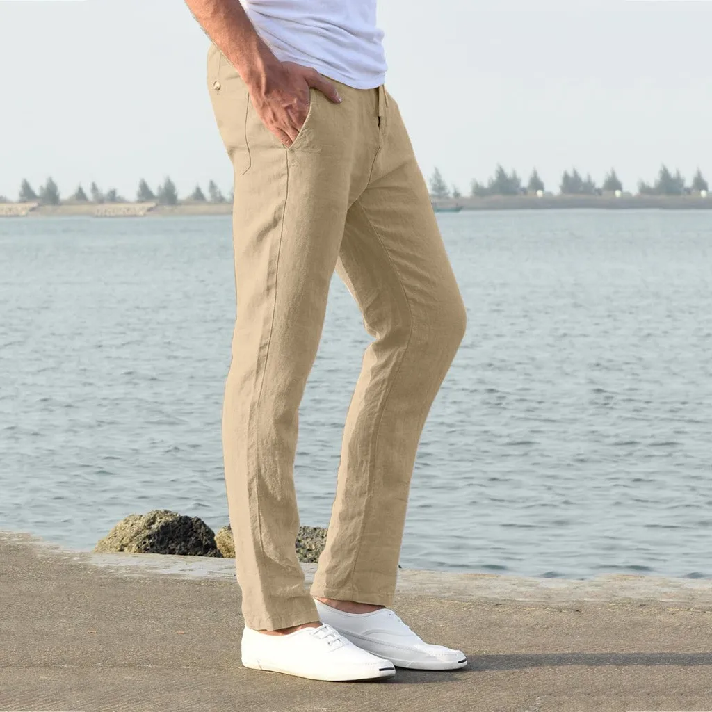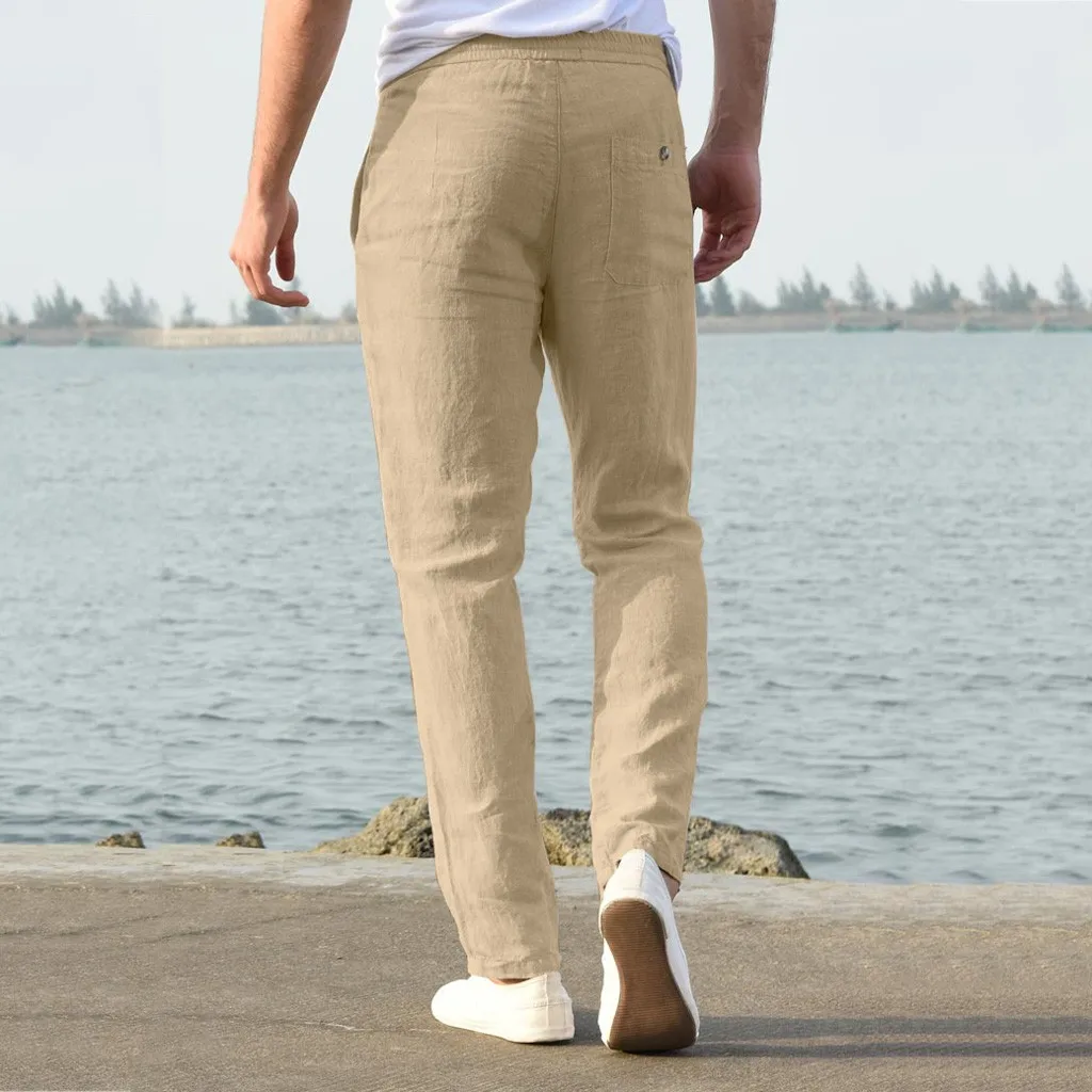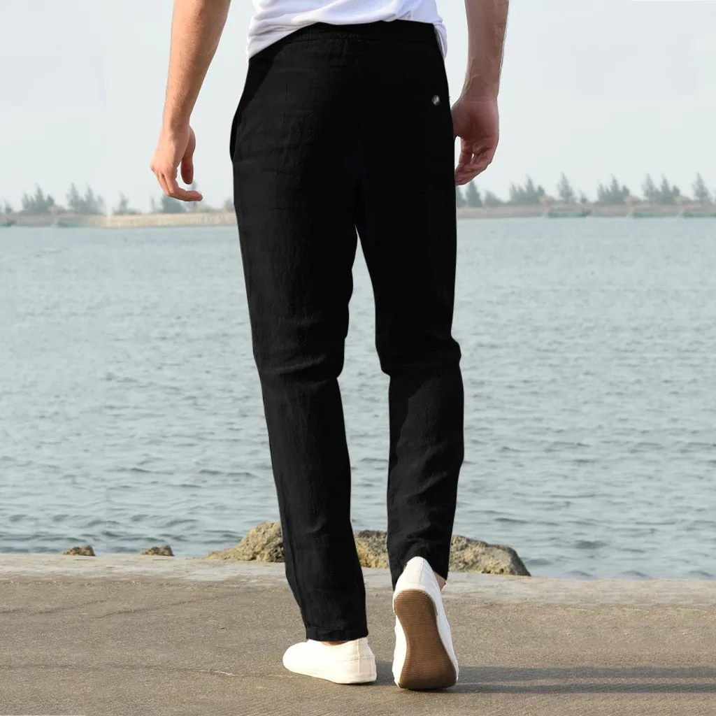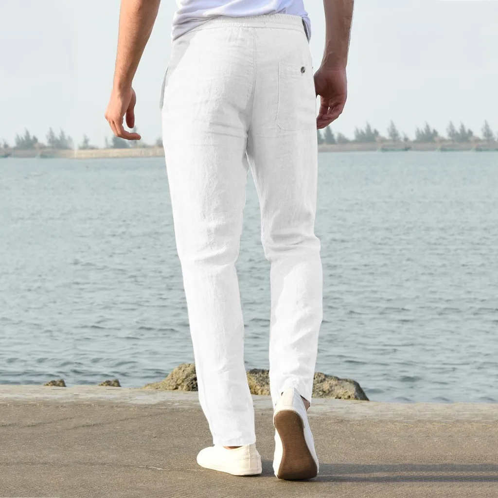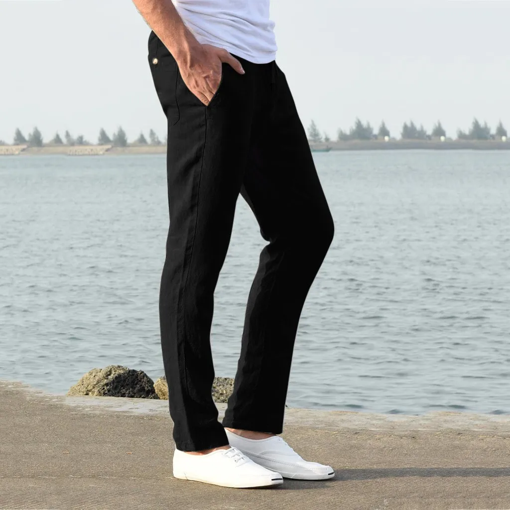 Feitong Fashion Cotton Linen Pants Men Casual Work Solid White Elastic Waist Streetwear Long Pants Trousers