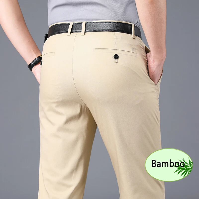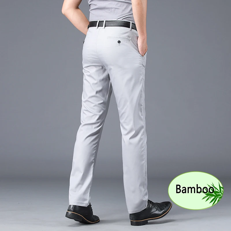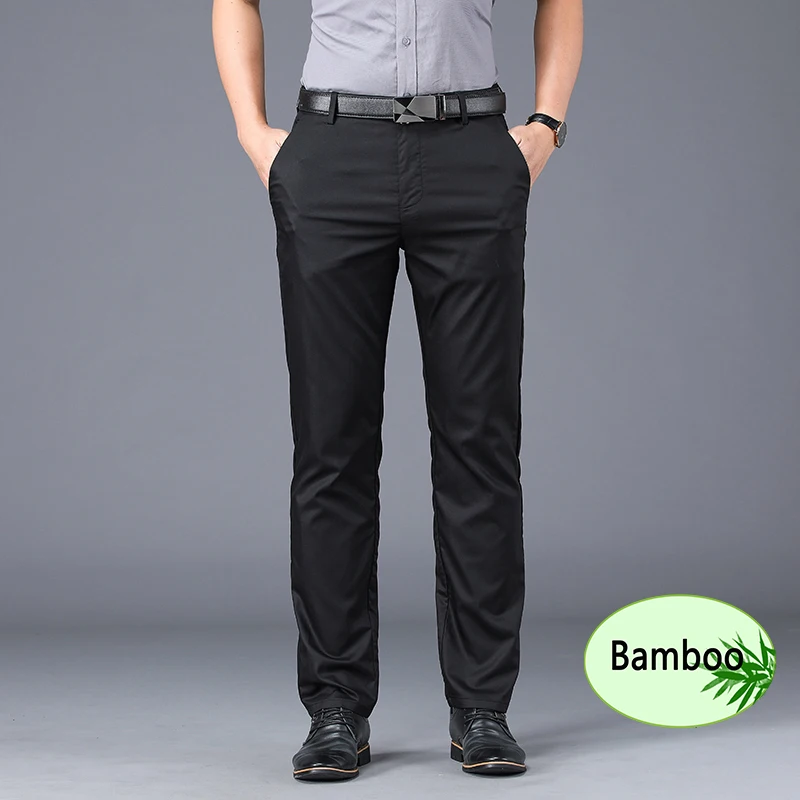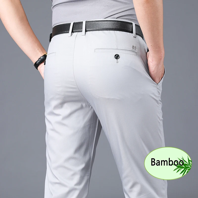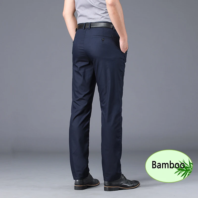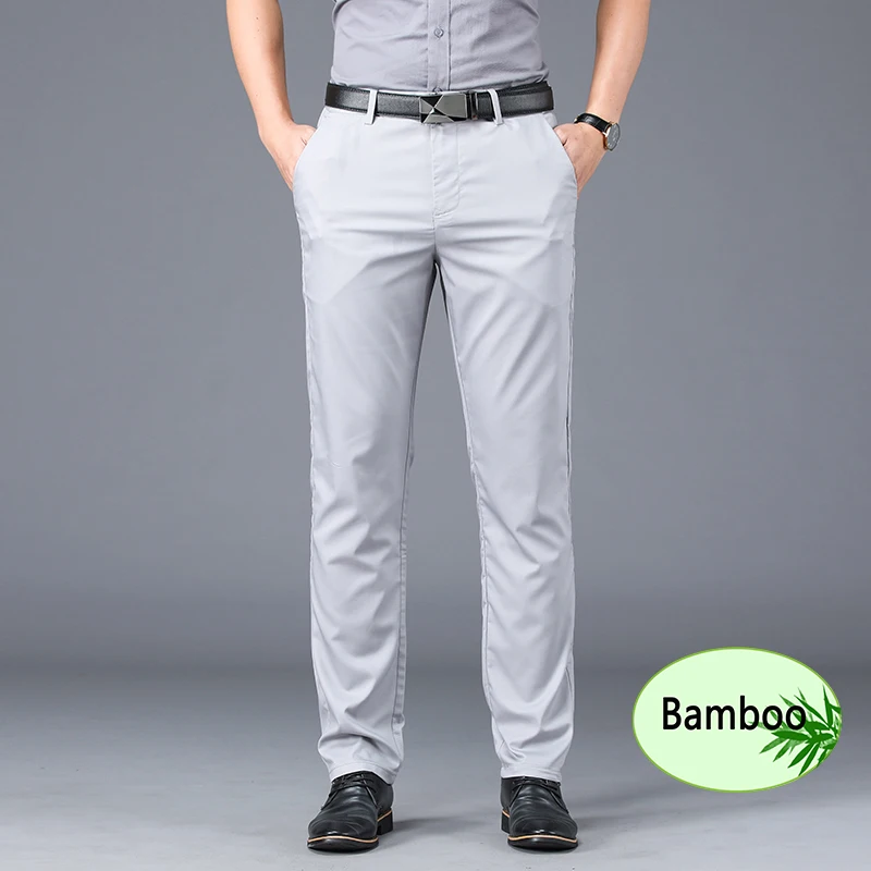 High Quality Men's Pants Baggy 100% Bamboo Fiber Stretch Thin 2022 Summer New Business Straight Trousers Male pantalones hombre