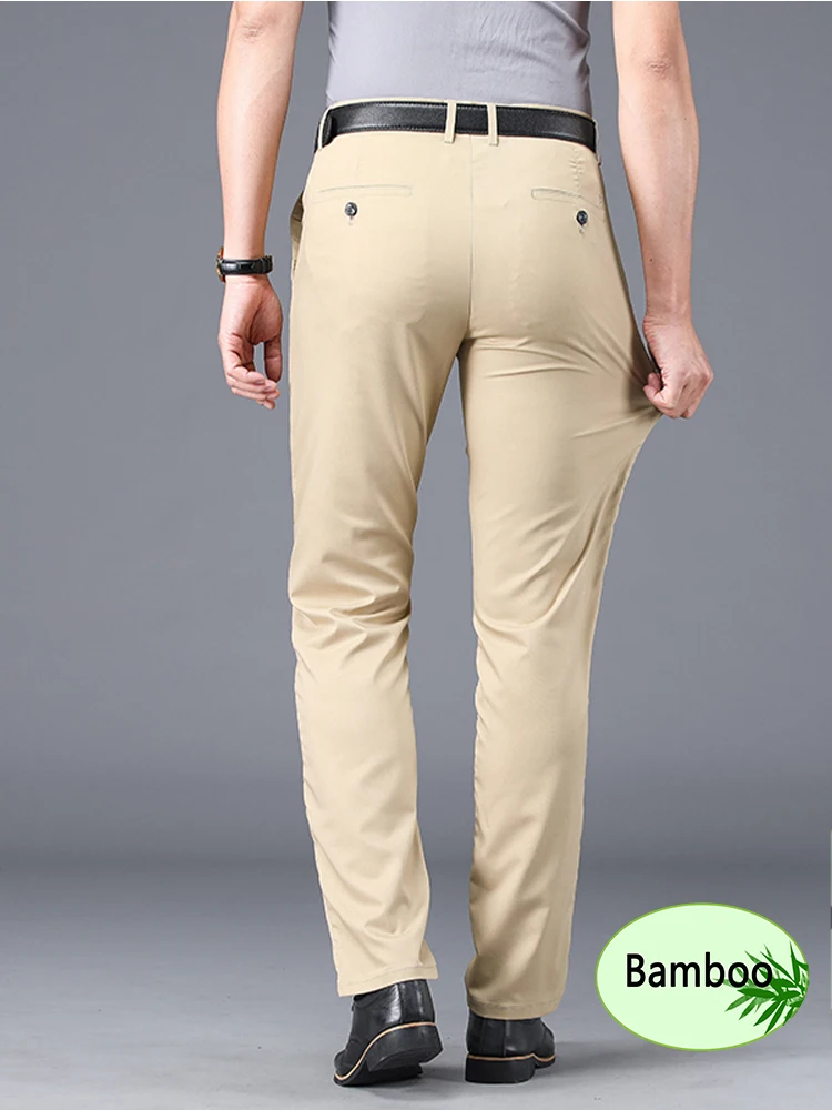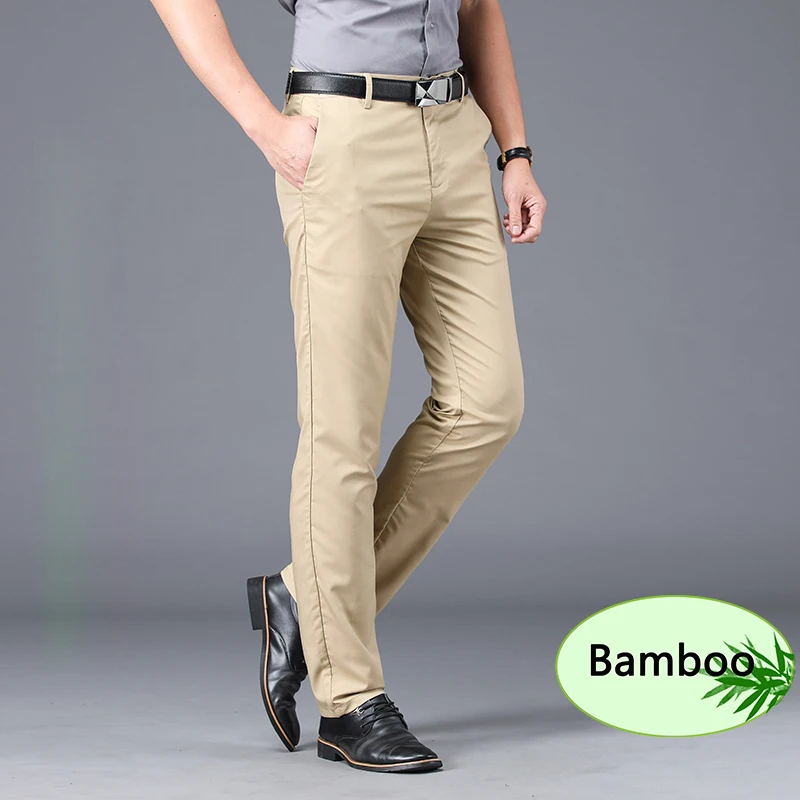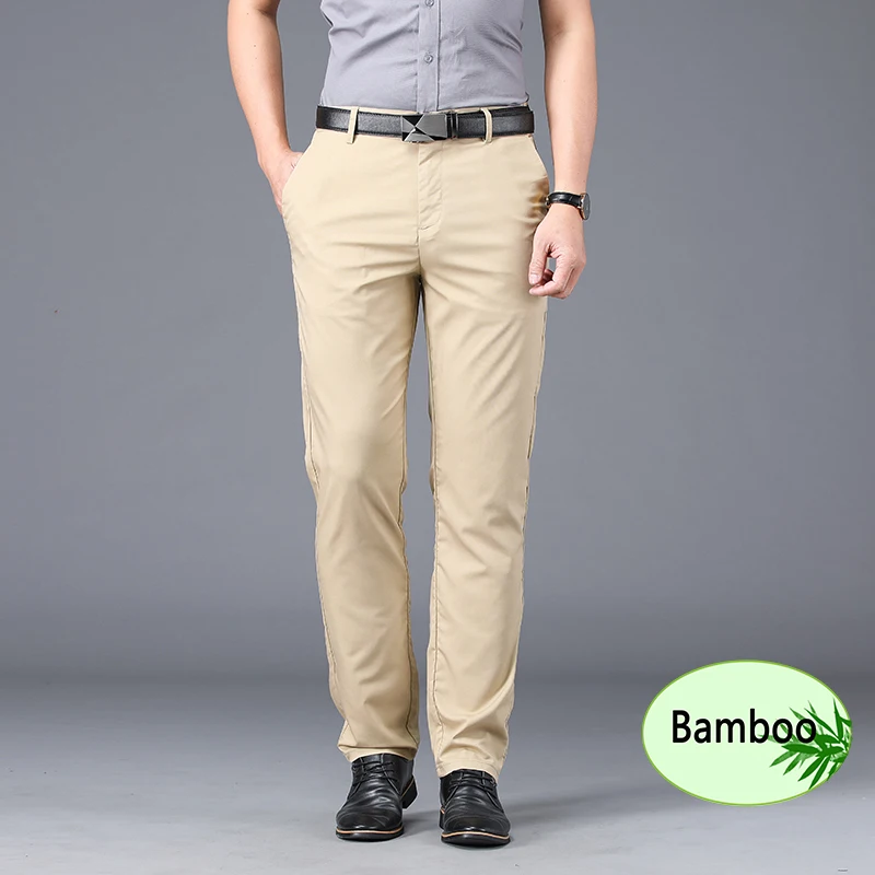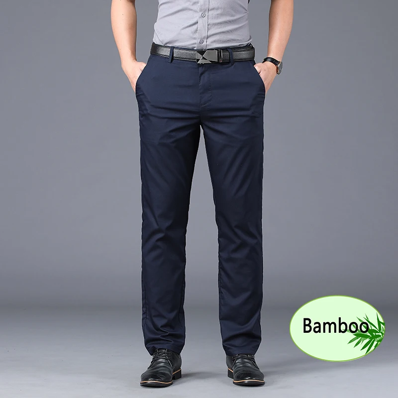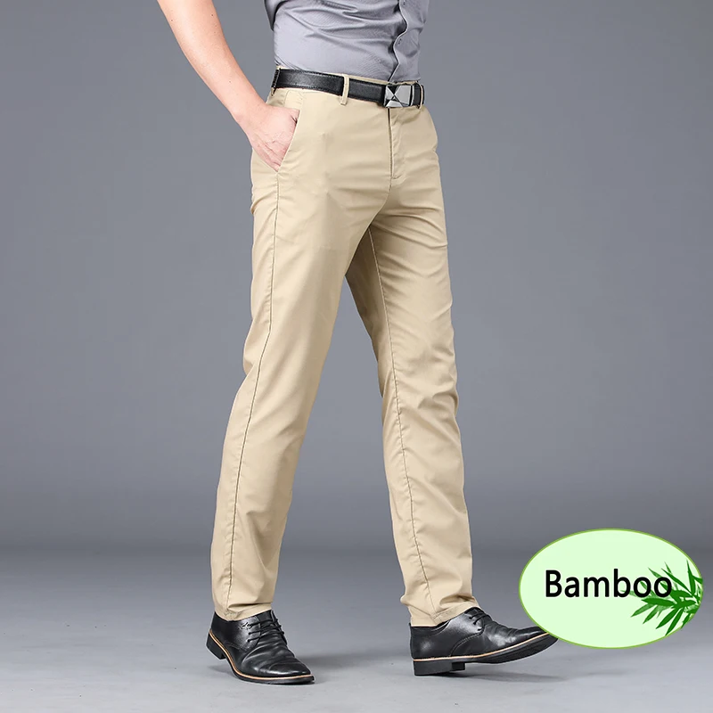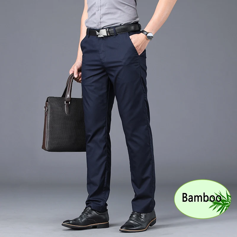 High Quality Men's Pants Baggy 100% Bamboo Fiber Stretch Thin 2022 Summer New Business Straight Trousers Male pantalones hombre
